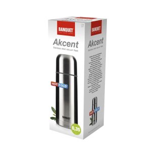 Nerezová termoska AKCENT, nerez 201 - vonkajší aj vnútorný povrch, plastový uzáver - clip pre jednoduché použitie (jedným stlačením sa termoska otvorí, druhým zavrie), viečko termosky je možné použiť ako pohárik na pitie. Nerezové termosky sú odolné, nehrozí rozbitie vložky (termoska je dvojplášťová). Teplotný pokles je závislý na teplote nápoja pri plnení, množstve nápoja a teplote okolia. Termoska má jednoduchý clip uzáver.
