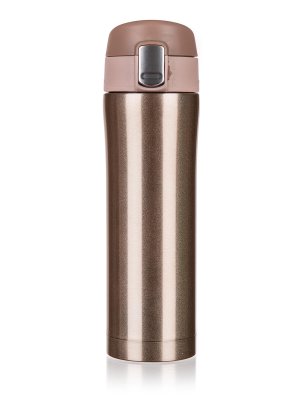 Cestovná termoska BODO má vonkajší aj vnútorný povrch z nerezu a plastové vyklápacie viečko. Vďaka dvojstennému prevedeniu si udrží nápoj dlhšie svoju teplotu. Viečko sa otvára stlačením poistky, pri ktorej je zámok zabraňujúci nechcenému otvoreniu termosky.