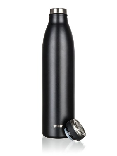Dvojstenná cestovná termoska SANS, v čiernej farbe, je vhodná na teplé aj studené nápoje. Vonkajšia časť je vyrobená z nerezu 201, vnútorná časť z nerezu 304 a viečko z plastu. Využiteľný objem je 750 ml. Telo termosky je vákuové, udrží tak nápoje dlhšie horúce alebo studené. Odporúčame uchovávať vo zvislej polohe.