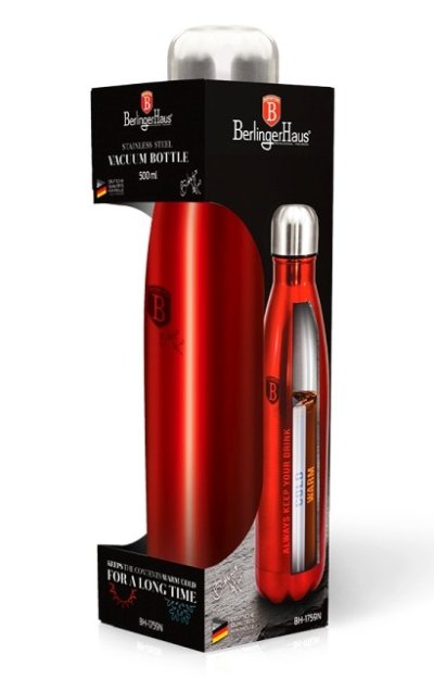 - materiál: nerezová oceľ - objem: 0,5 l - dvojitá stena udrží teplo až 12 hodín - skvelá na cestovanie, pohodlná do ruky - farba: burgundy - výška 25,5 cm - priemer 6,5 cm - značka: Berlinger Haus