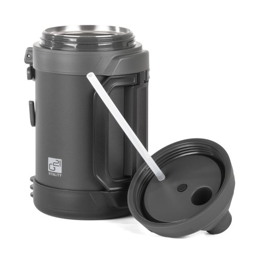 Veko termosky je opatrené klasickým náustkom a výklopnou slamkou . Pri studených nápojoch oceníte pohodlie slamky, na horúce nápoje sa odporúča využiť klasické náustok, aby nedošlo k popáleniu. Klasické náustok zároveň slúži ako presný lievik na dávkovanie nápoja do šálky či tégliku. Dvojitá nerezová stena udrží nápoj v správnej teplote po celý deň. Či už vás čaká bežkárska výprava, letný turnaj alebo odpočinkový deň pri vode, termoska G21 určite obstojí.