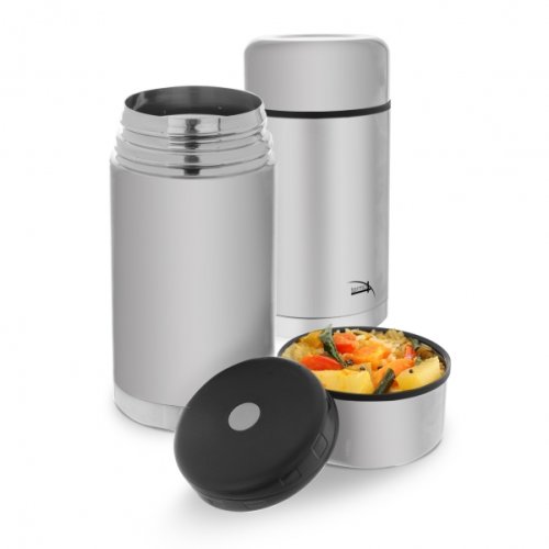Termonádoba udrží vložený pokrm po dlhú dobu teplý alebo naopak chladný. Bude sa vám hodiť na teplé polievky, osviežujúce šaláty a iné potraviny, a to doma aj na výlety. Jednoduché uzavretie na závit, široké hrdlo (ľahké plnenie a čistenie), plastové termo viečko môže poslúžiť aj ako miska. Materiál nerez, plast, silikónové tesnenie. Priemer 10.5 cm, výška 21.5 cm, celkový objem 1.2 litra, plnenie max. 1 liter. EAN 8592381166069