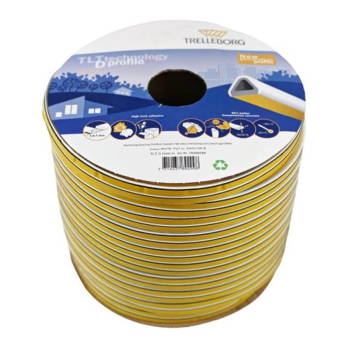 kvalitné značkové tesnenie TLT z EDPM gumy - Profil D - vhodné najmä do okien a dverí. Pre kvalitné uchytenie je opatrené samolepiacou páskou.