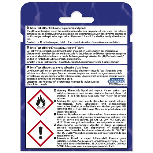 Tetra test pH sladkovodné, je určený na vykonávanie testu v sladkovodných akváriách a záhradných nádržiach. Nepoužíva sa na meranie v akváriách so slanou vodou, pretože to vedie k nepresnému výsledku testu. Tetra test pH slaná voda, je určený výhradne na vykonávanie testu v akváriách so slanou vodou.