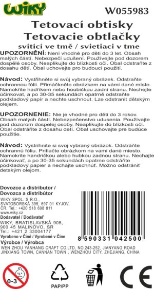 Tetovacie obtlačky - MIX 10,5x6 cm svietiace v tme