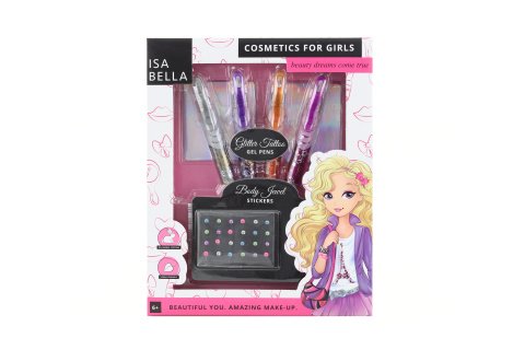 Tetovacia sada pre dievčatká. Obsahuje 4 trblietavé tetovacie perá a doplnky. Rozmery balenia cca 17x21x2,5 cm. Vek 6+
