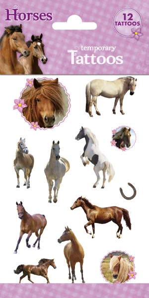 Tetovanie s motívom koňov môžete deťom umiestniť na telo a nemusíte sa báť, že mu zostane naveky. Tetovačky sa po nejakej dobe začnú postupne zmývať. Balenie obsahuje 12 ks tetovačiek. Rozmer balenia: 10 x 20 cm