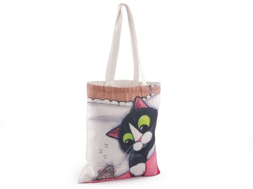 Bavlnená taška s motívom mačky je ideálnou voľbou pre všetkých milovníkov praktických a štýlových doplnkov. Je vyrobená z kvalitnej bavlny, je veľmi pevná, unesie všetko potrebné. Originálny design s mačkou pritiahne pozornosť. Taška nemá podšívku, je vhodná na bežné nákupy. Praktické dlhé uši zaisťujú pohodlné nosenie cez rameno, či už sa chystáte do mesta, parku alebo na pláž. Je jednostranná, potlač mačky je iba na čelnej, pohľadovej strane. Dokonale nahradí igelitovú tašku, jej nosením chránite životné prostredie.