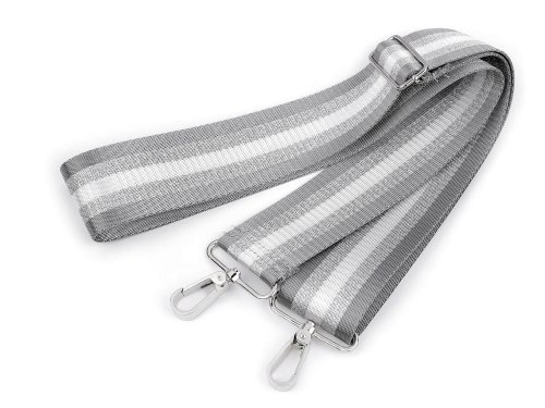 Textilný popruh vyniká lurexovými pruhmi, ktoré sa pútavo trblietajú. Je obojstranný. Na každej strane má kovovú karabínu, takže ho ku kabelke či taške ľahko pripnete. Dĺžku môžete regulovať.