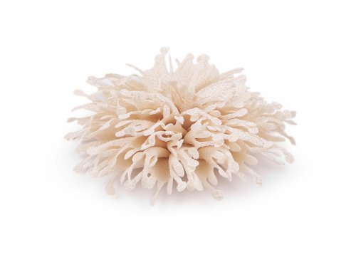 Strapatý textilný kvet pôsobí nadýchaným dojmom. V spodnej časti má filcové koliesko, vďaka ktorému ho pohodlne kamkoľvek upevníte. Môžete ho našiť či nalepiť ako ozdobu na šaty, kabátiky, svetre a pod. V kombinácii s brošňovým mostíkom s ním vytvoríte zaujímavú brošňu. Vďaka klipu ho zase môžete pripevniť na topánky.