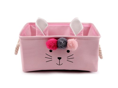 Úložný bavlnený kôš v podobe zajačika má široké možnosti použitia. Vďaka brmbolcom a vyčnievajúcim ušiam ho budú milovať predovšetkým deti a rôzne veľké slečny. Dá sa využiť ako úložný priestor na rôzne predmety. Je vystužený, má uchá do ruky, ktoré sú praktické na prenášanie. Stane sa praktickým doplnkom nielen do detskej izby.