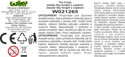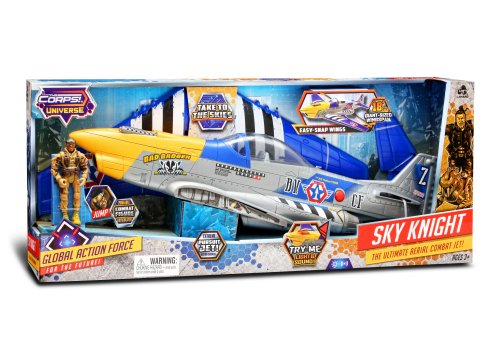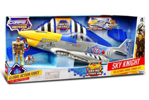 The Corps lietadlo Sky Knight s vojakom. Dĺžka lietadla 51 cm, rozpätie krídiel 46 cm, vojak 10 cm. Kokpit pre 2 figúrky. Svetelné a zvukové efekty. 2xAA batérie súčasťou. Návod na zloženie a umiestnenie samolepiek na obale.