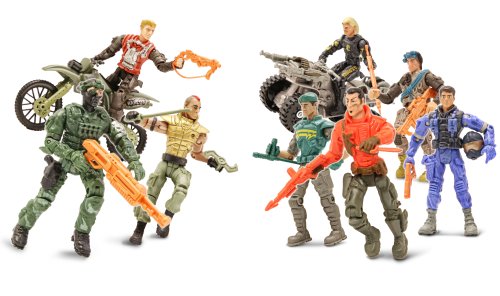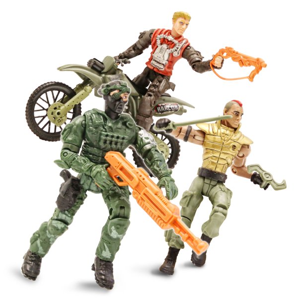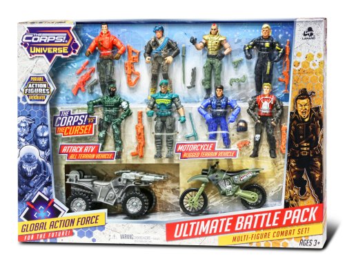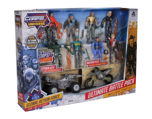 The Corps Vojaci s motorkou sada 8 figúrok. Obsah balenia - 8 figúrok vojakov 11 cm, motorka 13cm, štvorkolka 14 cm.