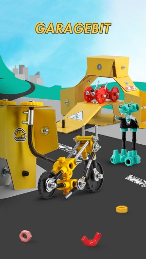 Dajte si závod do garáže, opravte auto alebo natankujte! Udržujte svoje vozidlá v špičkovom stave s GarageBit, ktorý obsahuje viac ako 200 farebných matíc, skrutiek, tvarovaných kúskov, samolepiek a viacúčelové balenie s nulovým odpadom, ktoré sa premení na súčasť herného zážitku a stane sa z neho garáž, čerpacia stanica a opravovňa. Popustite uzdu svojej fantázii. Táto sada umožňuje vytvorenie troch modelov s ďalšími nekonečnými možnosťami pre vaše vlastné kreatívne nápady . Ide o hračku, ktorá pomáha mladým ľuďom rásť v oblastiach vedy, technológie, inžinierstva, umenia a matematiky. Hračky OffBits taktiež podporujú rozvoj jemnej motoriky, priestorovej predstavivosti, riešenie problémov a nápadité hry. Čo môžete postaviť: Členovia posádky MechBit, WheelBit a OscarBit plus nekonečné množstvo jedinečných výtvorov, ktoré môžete postaviť pomocou svojej fantázie. Máte okolo seba kartón, skrutky alebo iné zábavné materiály? Vylepšujte s predmetmi každodennej potreby a vytvorte tiež svoje vlastné jedinečné vynálezy. Hlavné vlastnosti: obsahuje náradie pre zostavenie stavebnicekompatibilnosť s každodennými predmetmirozvoj kreativity, jemnej motoriky i logického mysleniahodné od ôsmich rokovviac ako 200 dielovobal je súčasťou herného zážitku