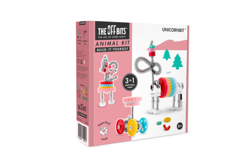 Je to váš šťastný deň! JednorožecBit je vzácny a magický tvor. Tento supervýkonný žrebec, ktorý obsahuje množstvo farebných matíc, skrutiek a tvarovaných bitov, ovláda čarodejníctvo, aby udržiaval všetky OffBits v bezpečí. Popustite uzdu svojej fantázii. Táto sada umožňuje vytvorenie troch modelov s ďalšími nekonečnými možnosťami pre vaše vlastné kreatívne nápady . Ide o hračku, ktorá pomáha mladým ľuďom rásť v oblastiach vedy, technológie, inžinierstva, umenia a matematiky. Hračky OffBits taktiež podporujú rozvoj jemnej motoriky, priestorovej predstavivosti, riešenie problémov a nápadité hry. Čo môžete postaviť: Jednorožeca Bit, rozprávkového robota Bit alebo autoBit plus nekonečné množstvo jedinečných výtvorov, ktoré môžete postaviť pomocou svojej fantázie. Máte okolo seba kartón, skrutky alebo iné zábavné materiály? Vylepšujte s predmetmi každodennej potreby a vytvorte tiež svoje vlastné jedinečné vynálezy. Hlavné vlastnosti: obsahuje náradie pre zostavenie stavebnicekompatibilnosť s každodennými predmetmirozvoj kreativity, jemnej motoriky i logického mysleniahodné od šiestich rokov3 v 1 Ilustrační foto balení: