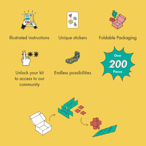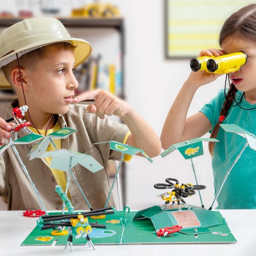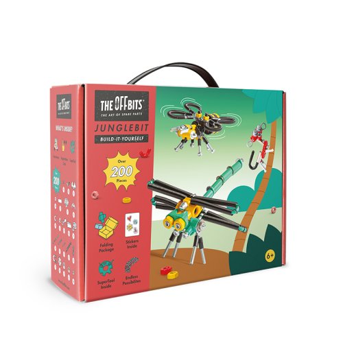 Džungľa ožíva vďaka trom jedinečným kamarátom a novému ihrisku, ktoré si môžeš postaviť z kartónu OffBits. Postavte si BeeBit, MonkeyBit a DragonflyBit a premeňte kartón na ihrisko Jungle, kde sa všetky zvieratká môžu hrať spoločne vo svojom prirodzenom prostredí. Sada obsahuje viac ako 200 farebných matíc, skrutiek, tvarovaných kúskov, samolepiek a naše viacúčelové balenie s nulovým odpadom, ktoré sa premení na súčasť herného zážitku a stane sa džungľou. Popustite uzdu svojej fantázii. Táto sada umožňuje vytvorenie štyroch modelov s ďalšími nekonečnými možnosťami pre vaše vlastné kreatívne nápady . Ide o hračku, ktorá pomáha mladým ľuďom rásť v oblastiach vedy, technológie, inžinierstva, umenia a matematiky. Hračky OffBits taktiež podporujú rozvoj jemnej motoriky, priestorovej predstavivosti, riešenie problémov a nápadité hry. Čo môžete postaviť: BeeBit, MonkeyBit, DragonflyBit plus nekonečné množstvo jedinečných výtvorov, ktoré môžete postaviť pomocou svojej fantázie. Máte okolo seba kartón, skrutky alebo iné zábavné materiály? Vylepšujte s predmetmi každodennej potreby a vytvorte tiež svoje vlastné jedinečné vynálezy. Hlavné vlastnosti: obsahuje náradie pre zostavenie stavebnicekompatibilnosť s každodennými predmetmirozvoj kreativity, jemnej motoriky i logického mysleniahodné od šiestich rokovviac ako 200 dielovobal je súčasťou herného zážitku
