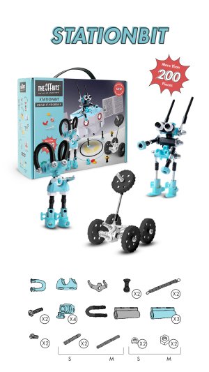 Postavte medzihviezdnu vesmírnu stanicu! Preskúmajte blízke aj vzdialené planéty so StationBit, ktorý obsahuje viac ako 200 farebných matíc, skrutiek, tvarovaných kúskov, samolepiek a viacúčelové balenie s nulovým odpadom, ktoré sa premení na súčasť herného zážitku a stane sa vesmírnym modulom. Popustite uzdu svojej fantázii. Táto sada umožňuje vytvorenie troch modelov s ďalšími nekonečnými možnosťami pre vaše vlastné kreatívne nápady . Ide o hračku, ktorá pomáha mladým ľuďom rásť v oblastiach vedy, technológie, inžinierstva, umenia a matematiky. Hračky OffBits taktiež podporujú rozvoj jemnej motoriky, priestorovej predstavivosti, riešenie problémov a nápadité hry. Čo môžete postaviť: Astronautov SaturnBit, DroidBit a RoverBit plus nekonečné množstvo jedinečných výtvorov, ktoré môžete postaviť pomocou svojej fantázie. Máte okolo seba kartón, skrutky alebo iné zábavné materiály? Vylepšujte s predmetmi každodennej potreby a vytvorte tiež svoje vlastné jedinečné vynálezy. Hlavné vlastnosti: obsahuje náradie pre zostavenie stavebnicekompatibilnosť s každodennými predmetmirozvoj kreativity, jemnej motoriky i logického mysleniahodné od ôsmich rokovviac ako 200 dielovviacúčelové balenie