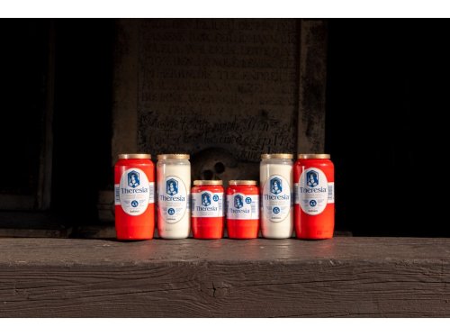 Kompozitná sviečka Theresia v bielej farbe, horí až 3,5 dňa. Vhodná na cintorínske použitie.