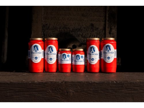 Kompozitná sviečka Theresia v červenej farbe, horí až 3,5 dňa. Ideálne pre hroby.