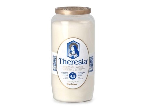 Kompozitná sviečka Theresia v bielej farbe, horí až 4,5 dňa.