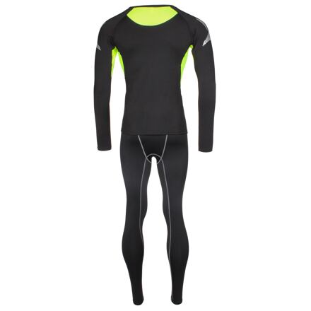 Pánsky set fitness termobielizne Thick Warm vás udrží dlhšie v teple nielen pri zimných športoch a aktivitách. Bielizeň je vyrobená z pevného a zároveň pružného materiálu, ktorý je rýchloschnúci a na tele príjemný. Termobielizeň má priliehavý strih a je tak ideálna ako prvá vrstva pod oblečenie. Súprava obsahuje termo tričko s dlhým rukávom a termo legíny. Termo tričko má v podpazuší a za krkom špeciálne zóny na udržanie optimálnej teploty tela. Zloženie: 90,5% polyester, 9,5% spandex. Perte maximálne na 30 °C s podobnými farbami. Veľkosť M: Tričko dĺžka: 65 cm, obvod hrudníka: 84 cm, dĺžka rukáva: 65 cm Legíny dĺžka: 87 cm, obvod pása: 64 cm, obvod bokov: 84 cm Veľkosť L: Tričko dĺžka: 67 cm, obvod hrudníka: 88 cm, dĺžka rukáva: 67 cm Legíny dĺžka: 89 cm, obvod pása: 68 cm, obvod bokov: 88 cm Veľkosť XL: Tričko dĺžka: 69 cm, obvod hrudníka: 92 cm, dĺžka rukáva: 69 cm Legíny dĺžka: 91 cm, obvod pása: 72 cm, obvod bokov: 92 cm Veľkosť XXL: Tričko dĺžka: 71 cm, obvod hrudníka: 96 cm, dĺžka rukáva: 71 cm Legíny dĺžka: 93 cm, obvod pása: 76 cm, obvod bokov: 96 cm Veľkosť XXXL : Tričko dĺžka: 73 cm, obvod hrudníka: 100 cm, dĺžka rukáva: 73 cm Legíny dĺžka: 95 cm, obvod pása: 80 cm, obvod bokov: 98 cm