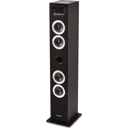 Multimediálna veža - systém 2.0 Celkový hudobný výkon: 60 W Bluetooth CD prehrávač Slot USB a čítačka SD kariet pre prehrávanie (MP3) Konektor USB pre nabíjanie smartfónu FM rádio Pamäť prednastavených staníc- uloženie max. 20 predvolieb LED displej Hodiny s budíkom a funkciou SLEEP AUX IN AC 230V Rozmery bez podstavca: 13,8 x 17,8 x 85 cm (šxhxv) Rozmery s podstavcom: 19 x 22,7 x 86,5 cm (šxhxv) Hmotnosť: 4 kg