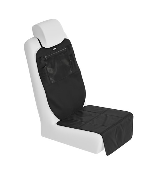 Komplexná ochrana Tento chránič sedadla s nastaviteľnou výškou ponúka dvojdielne plné pokrytie – jedna časť chráni zadné sedadlo, zatiaľ čo druhá sa zmestí pod detskú autosedačku. Je vybavený vreckom na iPad a veľkými úložnými vreckami na hračky a má aj štyri ďalšie sieťové úložné priehradky. Vrecko na iPad sa uzatvára na zips a je testované spoločne s autosedačkami Thule. Chránič sedadla je možné prať v práčke na 30 stupňov pre ľahkú údržbu.