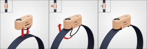 2. Zložte obojok Vášho psa/mačky. Priložený silikónový krúžok (gumičku) vložte do jednej z bočných drážok odpudzovača. Uistite sa, že gumička do drážky bezpečne zapadá.