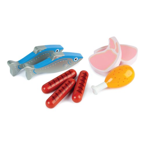 Čerstvá donáška mäsa a rýb v drevenom boxe s rukoväťami. Skvelá hračka pre hru na obchodníkov alebo kuchárov, set obsahuje 2 ryby, 2 kotlety, 3 klobásy a 1 kuracie stehno. Skvelý spôsob, ako deti naučiť o dôležitosti zdravej a vyváženej stravy, aj o tom, odkiaľ jedlo pochádza a ako ho pripraviť. Každý z dielikov je zavalitý a ideálny pre malé detské ruky. Podporuje kreatívnu a predstavivú hru. Vyrobené z kvalitných materiálov zo zodpovedných zdrojov. Zodpovedá európskej bezpečnostnej norme. Hlavné vlastnosti: • ideálny tvar pre malé detské ruky • podporuje kreativitu a predstavivosť