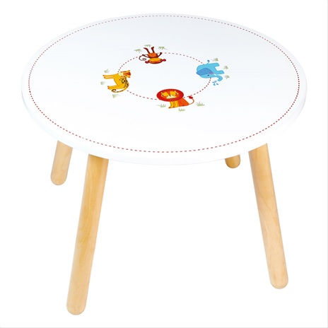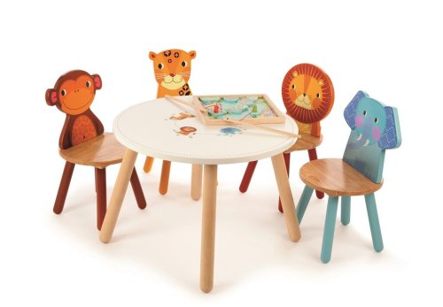 S krásnymi ilustráciami leva, slona, leoparda a opice bude tento zvierací stôl hitom u všetkých milovníkov safari. Má ideálnu výšku pre deti, môže sa použiť na hranie aj k jedlu a bude sa vynímať v každej detskej izbe, herni či kuchyni. Používajte iba doma. Set 4 stoličiek rovnakého dizajnu je možné dokúpiť zvlášť z našej ponuky. Po vybalení je nutné zložiť. Vyrobené z kvalitných materiálov zo zodpovedných zdrojov. Zodpovedá európskej bezpečnostnej norme. Hlavné vlastnosti: safari designideálna výška pre deti