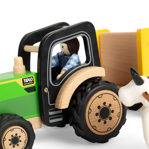 Tento pekný, drevený traktor s priestranným prívesom pomôže zorať či zožať všetku úrodu z Vašich polí! Podporuje detskú kreativitu, predstavivosť a rozvíja koordináciu ruka-oko. Postavička ani hospodárske zvieratá nie sú súčasťou balenia, je možné ju dokúpiť v našej ponuke. Vyrobené z kvalitných materiálov zo zodpovedných zdrojov. Zodpovedá európskej bezpečnostnej norme. Hlavné vlastnosti: obsahuje traktor a príves podporuje detskú kreativitu a predstavivosť kompatibilnú s položkami T0143, T0096, T0502 a T0095