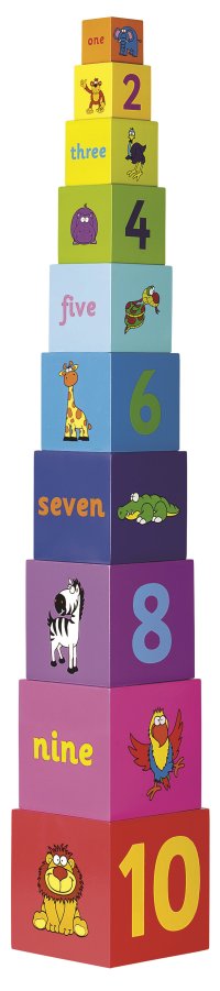 Kocky rozdielnych veľkostí, skúste ich naskladať na seba v správnom poradí od najväčšej po najmenšiu a vytvorte vežu. Každá kocka má na jednej strane číslicu od 1 do 10 a krásnu ilustráciu, ktorá korešponduje s číslom kocky. Napríklad číslo 8 a osem pomarančov. Pri skladaní deti môžu na každej kocke vymenovať zviera alebo objekt, čo im pomôže s jazykovými zručnosťami a slovnou zásobou, spočítať bodky a skontrolovať, či výsledok zodpovedá číslici, čo im pomôže s počtami a poznávaním čísel. Perfektná hračka pre najmenších je všestrannou učebnou pomôckou, podporuje skorý rozvoj čítania, počítania, poznávania farieb a tvarov, poznávania zvierat. Keď sa deti dohrajú, môžu kocky naskladať na seba, nezaberú veľa úložného priestoru. Rozvíja koordináciu ruka-oko, jemnú motoriku a zručnosť. Vyrobené z kvalitných materiálov zo zodpovedných zdrojov. Zodpovedá európskej bezpečnostnej norme. Hlavné vlastnosti: všestranná učebná pomôcka krásna ilustrácia rozvíja jemnú motoriku a zručnosť
