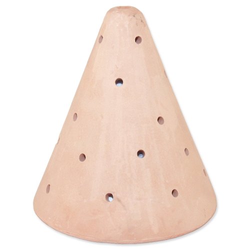 Keramické tienidlo kužeľovitého tvaru s otvormi. Priemer: 11 cm, výška 13 cm.