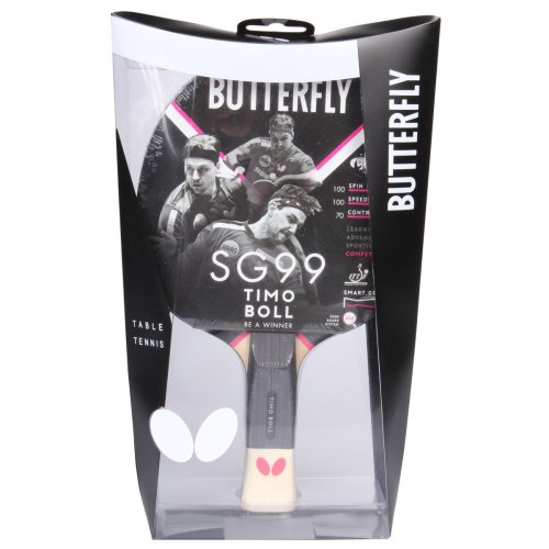 Rad pálok na stolný tenis Timo Boll SG (Smart Grip) z dielne popredného výrobcu Butterfly nesie názov po jednom z najlepších hráčov stolného tenisu vôbec. Ping pongová raketa Timo Boll SG99 je designovaná pre top výkonnostných hráčov, ktorí už dosahujú vysokú hernú úroveň, zároveň však usilujú o ešte vyšší rozvoj svojich herných zručností až k výnimočným schopnostiam šampióna Bolla a chcú vynikať rovnako ako on ako nadmierou technicky odohraných loptičiek tak aj dynamicky ofenzívnymi smečmi. Popri vycibrenej technickej úrovni úderov na spin a pozoruhodnej rýchlosti pohybu s bleskovými reflexmi pri príjme súperových lôpt budete samozrejme potrebovať aj zodpovedajúcu výkonnostnú pálku. Model Timo Boll SG99 disponuje 1,8 mm poťahom Wabaka pre vyšší potenciál spinových úderov s anatomicky tvarovaným držadlom so stredovým zárezom pre citlivejší a plnší úchop pálky a pre minimalizáciu rizika skĺznutia prstov. Technologickou vychytávkou pálky je aj EGS systém (Edge Guard System), upravený okraj poťahu pálky pre redukciu straty energie odpálenej loptičky pri jej zasiahnutí pri okraji. Timo Boll SG99 je spoľahlivým nástrojom pre vysoké herné tempo a technicky vycibrený herný štýl.