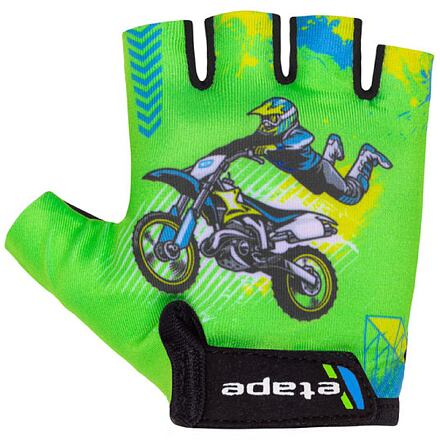 Cyklistické rukavice patria do základného vybavenia každého správneho cyklistu. Jednak pri páde chránia dlane proti odreniu, zvyšujú celkový komfort pri jazde a slúžia zároveň aj ako módny doplnok k vášmu cyklistickému oblečeniu. Detské cyklistické rukavice Etape Tiny s roztomilým dizajnom majú anatomické prešitie dlane, protišmykovú úpravu a jednoduché zapínanie na suchý zips. Model Tiny sa vyrába v niekoľkých farebných prevedeniach tak, aby ladil k detským cyklistickým helmám značky Etape. Podľa výrobcu veľkosť rukavíc zodpovedá približne veku dieťaťa.