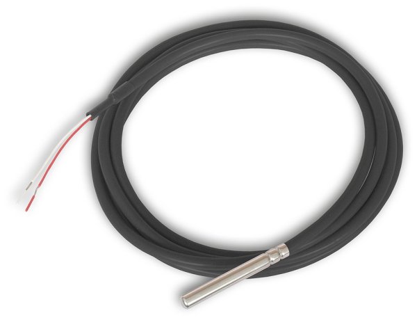 Senzor PT1000 so 100cm káblom je vhodný na meranie vysokých teplôt až do +200 °C. Senzor je chránený oceľovým puzdrom.