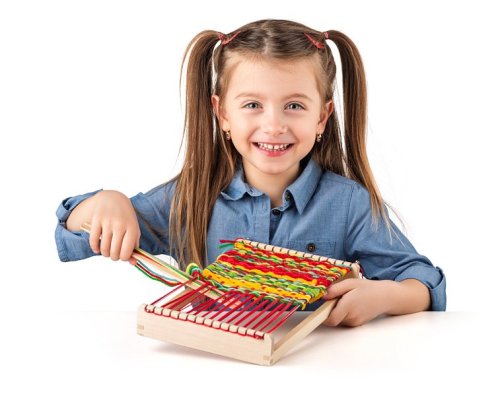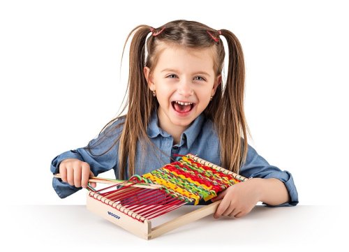 Vek: 3 + Rozmer: 26 x 17,5 x 3,5 cm Jednoduchý drevený tkáčsky stav. Vynikajúca hračka pre rozvoj manuálnej zručnosti. Na stav sa najskôr napne vlnený povrázok a potom už pomocou dvoch člnkov s namotanou vlnou vzájomne prepletáme cez napnuté povrázky na stave. A dečka pre bábiku je hotová... Obsahuje: 2 x člnok, klbko vlnených povrázkov, 1 x hrebeň, 2 x poistné drôty.