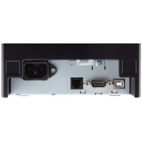 Tlačiareň v čiernom prevedení má kompaktný dizajn, je vybavená USB/sériovým portom, interným zdrojom a tichou a rýchlou rezačkou papiera .
