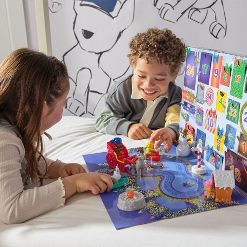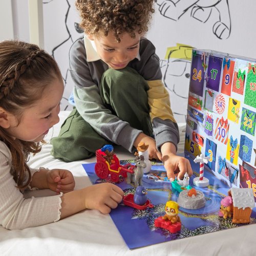 Odpočítavanie do prázdnin s adventným kalendárom Paw Patrol! V tejto slávnostnej darčekovej sade môžu deti každý deň objaviť iný vianočný darček Tlapková patrola! Vďaka 24 darčekom, ktoré nájdete, vždy za každým dverami čaká nové prekvapenie. Deti objavia svoje obľúbené šteňatá, ako je Santa Chase, Rudolph Marshall, Skye, Rubble, Everest, Rocky a Zuma, oblečená do prázdnin, tučniaka, snehuliaka, kočiar ťahaný koňmi a Chickalettu s klobúkom! Dodáva sa tiež s roztomilými doplnkami, ako sú snowboardy, darčeky pre perníkových psíkov, ohnisko, priečelie obchodu a ďalšie! Po otvorení všetkých 24 darčekov môžu deti využiť svoju predstavivosť na vytvorenie dobrodružného snehového dňa a poslať šteňatá a ich priateľov na vzrušujúce prázdninové misie! Oslávte sviatky s adventným kalendárom Paw Patrol! Hračky PAW Patrol pre chlapcov a dievčatá sú skvelými darčekmi pre deti, ktoré sú fanúšikmi tejto show, aby podporili imaginatívnu predstieranú hru a zlepšili jemné motorické zručnosti. Prežite znovu vzácne okamihy z obdobia PAW Patrol, ako sú Mighty Pups a PAW Patrol Movie, alebo vytvorte úplne nové dobrodružstvá s jednotlivými šteniatmi PAW Patrol a ich príslušnými autíčkami (každé sa predáva samostatne). Zvýšte vzrušenie s kompletným tímom Rescue Wheels, vrátane vozidiel PAW Patrol, akčných figúrok a úplne nového veliteľstva PAW Patrol Tower pre nekonečné hodiny preplňovaných dobrodružstiev inšpirovaných sériou!