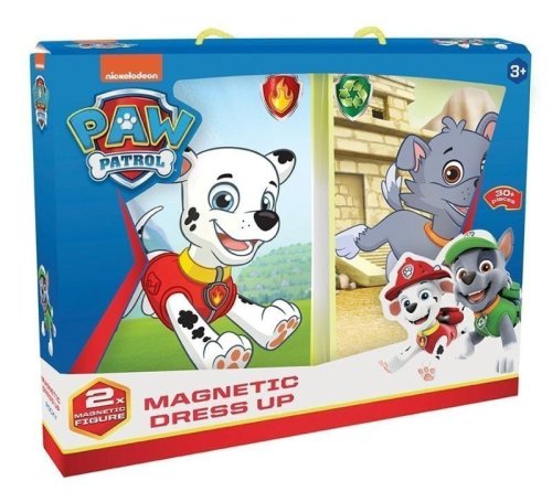 Balenie obsahuje 2 magnetických psíkov, 2 drevené stojančeky, 2 farebné pozadia a 2 listy s magnetickými oblečkami a doplnkami v obľúbenej licencii Tlapková patrola.