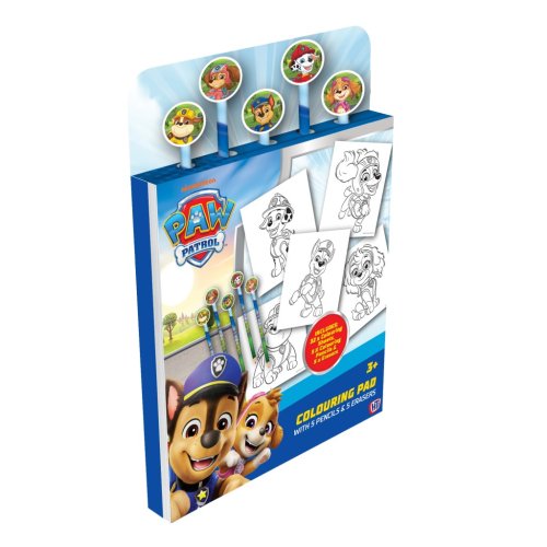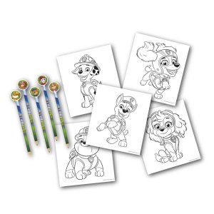 Sada obsahuje 32 omaľovánok šteniatok Tlapkovej Patroly. Súprava obsahuje 6 pasteliek a 6 gúm.