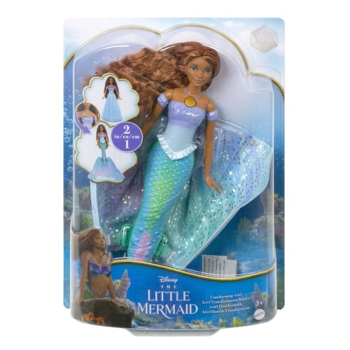 Preskúmajte čarovný svet Malé morské víly novým spôsobom! Bábika Malá morská víla s kúzelnou premenou je inšpirovaná hraným filmom spoločnosti Disney. Bábika ponúka úžasnú premenu z princeznej na morskú vílu a to stlačením tlačidla na bábike. Bábika má v podobe princeznej modrú lesklú sukňu av podobe morskej víly chvostovú plutvu.