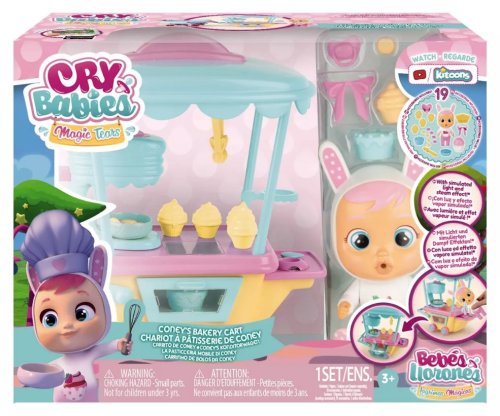 Objavte svet mini bábik Cry Babies magic Tears - kúzelné slzy. Pekáreň Coney na kolieskach: magické slzy Coney aktivujú funkciu osvetlenia a pary v rúre. Set obsahuje:
