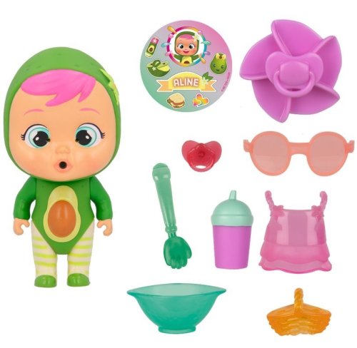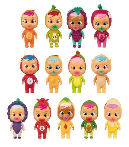 Je tu nový rad voňavých zberateľských bábik, ktoré potrebujú starostlivosť a lásku každého dievčatka! Bábiky ronia farebné slzy. Plač zastavíte cumlíkom. Tutti Frutti bábiky sú úplne nové postavičky v jedinečných oblečení s motívom ovocia, ktoré aj vonia. Bábiky sú zabalené v domčeku v tvare shakera. Sada obsahuje: jednu z 12 nových voňavých bábik: Aline, Claire, Gaby, Grany, Rina, Gala, Mori, Grace, Pamela, Peyton, Oci, Angie a doplnky ako sú okuliare, podbradník, cumlík, miska, lyžica, gumená, fľaša, bábika makké. Keď ju napojíte z fľaštičky a stlačíte bruško, sledujte ako roní skutočné slzy. Vodu môžete tiež doplniť otvorom v hlavičke.