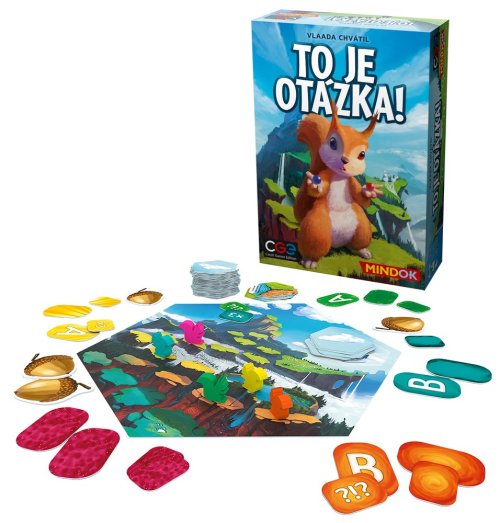 Balenie obsahuje: 1 herný plán, 1 otázkový trojuholník, 108 kariet odpovedí, 5 orieškov, 6 veveričiek, 1 pravidlá, 6 kariet A, 6 kariet B, 12 bonusových žetónov.