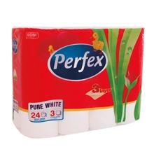 Toaletný papier Perfex 3vrstvový Biely Balenie 24 roliek Počet útržkov na rolke: 90 Vhodné pre ubytovacie zariadenia ako praktická jednorazová rolka na 1 noc, návin rolky 10 m