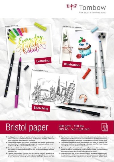Kresliaci blok Bristol. Formát: A5 (210 x 148 mm), gramáž: 250 g/m², 25 listov. Biely, hladký papier s mimoriadne vysokou opacitou. Hodí sa pre tekuté aj suché techniky: maľovanie štetcovými fixami, finelinery, kreslenie ceruzkami, pastelkami atď. Ideálne pre ilustrovanie, kreslenie, skicovanie. Neobsahuje kyseliny, je odolný proti oteru.
