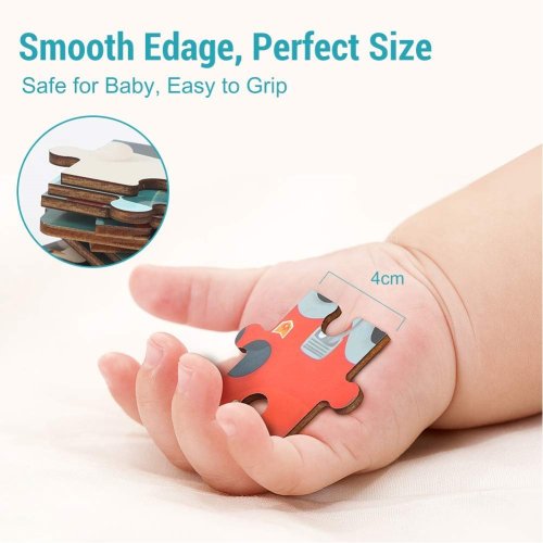 Drevené puzzle ukryté v roztomilej plastovej hračke.