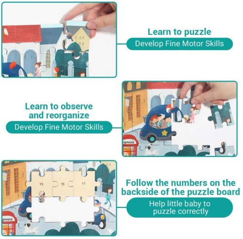 Puzzle je vyrobené z vysoko kvalitného dreva, každý dielik má zo zadnej strany číslo pre jednoduchšiu orientáciu pri skladaní obrázku, rozvíja matematické a logické myslenie. Hračka je vyrobená z plastu, má kolieska a zo spodnej strany otváracie veko na ukladanie puzzle alebo iných pokladov. Puzzle obrázok je samostatný a jeho hlavnou témou sú dopravné prostriedky. Pokiaľ zakúpite viac dopravných prostriedkov z tejto mini série Top Bright, môžete ich umiestniť vedľa seba, pretože okrajové časti na seba postupne nadväzujú, a vytvoriť tak panoramatické puzzle. Mini séria zahŕňa tieto dopravné prostriedky: hasičské auto, policajné auto, školský autobus, buldozér, vrtuľník a loď (pozri vyššie - ilustratívny obrázok) . Deti budú nadšené. Viac puzzle = viac hračiek!