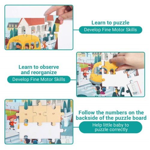 Puzzle je vyrobené z vysoko kvalitného dreva, každý dielik má zo zadnej strany číslo pre jednoduchšiu orientáciu pri skladaní obrázku, rozvíja matematické a logické myslenie. Hračka je vyrobená z plastu, má kolieska a zo spodnej strany otváracie veko na ukladanie puzzle alebo iných pokladov. Puzzle obrázok je samostatný a jeho hlavnou témou sú dopravné prostriedky. Pokiaľ zakúpite viac dopravných prostriedkov z tejto mini série Top Bright, môžete ich umiestniť vedľa seba, pretože okrajové časti na seba postupne nadväzujú, a vytvoriť tak panoramatické puzzle. Mini séria zahŕňa tieto dopravné prostriedky: hasičské auto, policajné auto, školský autobus, buldozér, vrtuľník a loď (pozri vyššie - ilustratívny obrázok) . Deti budú nadšené. Viac puzzle = viac hračiek!